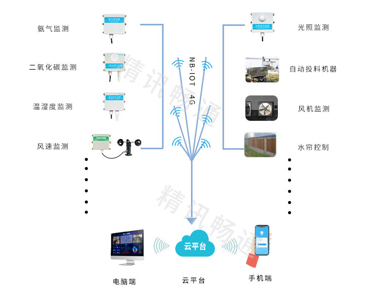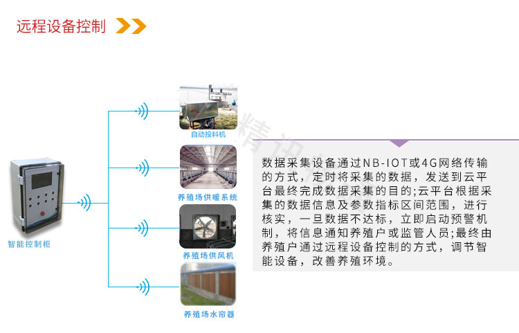 农场管理者可以通过手机、计算机等信息终端,实时掌握养殖场环境信息,及时获取异常报警信息,并可以根据监测结果,远程控制相应设备,实现健康养殖、节约成本、减少人工、节能降耗的目的。