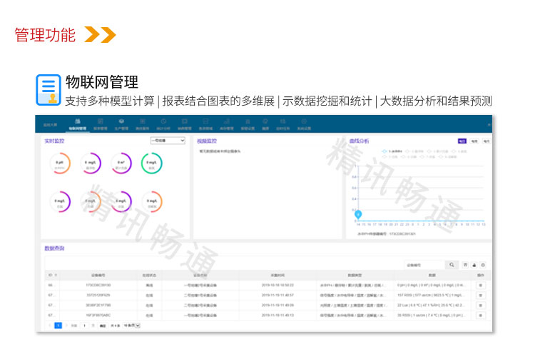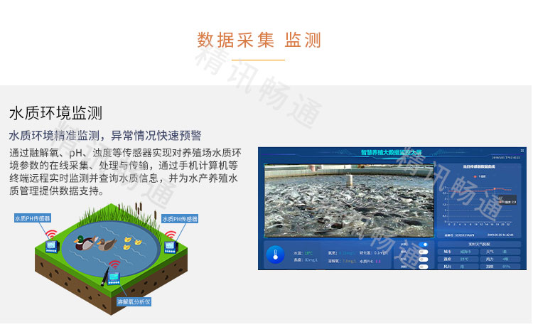 1、实时在线监测;解决养殖水质环境的实时在线检测,随时随地掌握全面的养殖条件情况,解决养殖设备的远程管理和自动控制。